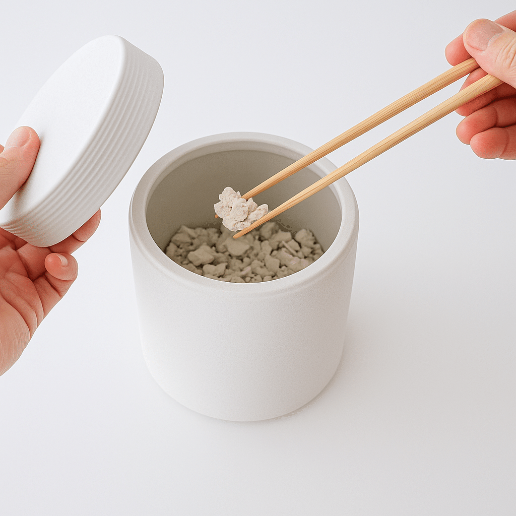 私たち京都博國屋の手元供養品は、その多くが天然素材で制作しています。もちろん、中には気密性や重量感を重視して真鍮やアルミなどの金属を用いた供養品もあります。しかし、ほとんどの供養品は、「最後は一緒に棺に入れられるように」という想いから、自然に還る素材を選んでいます。